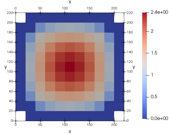 2D_C5G7: Neutronic power distribution for NEA 2D benchmark on deterministic transport calculations without spatial homogenization. The description can be found here.